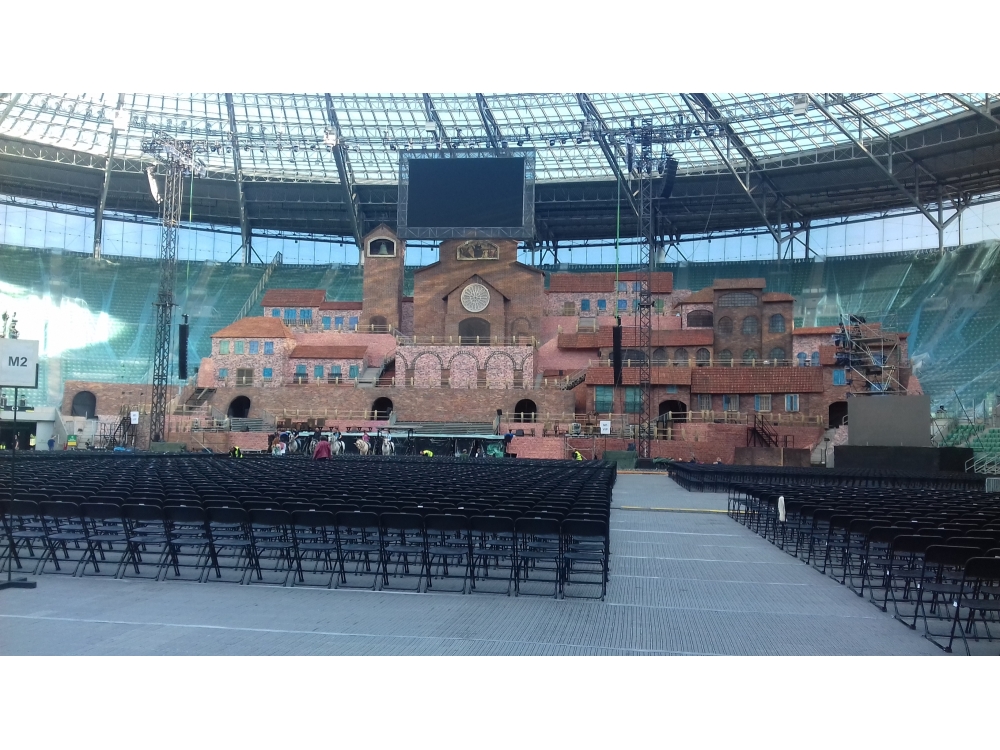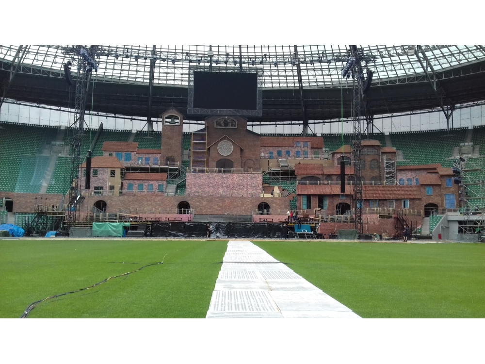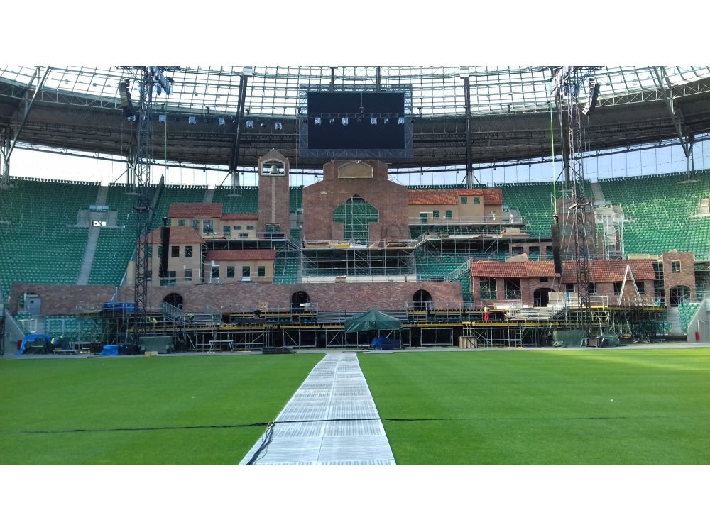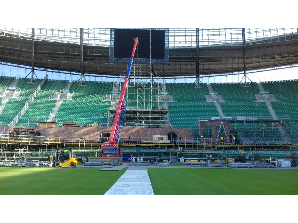 Gestaltung des gesamten Bühnenbildes, Aufbau und Management vor Ort im Breslauer Fußball Stadion.