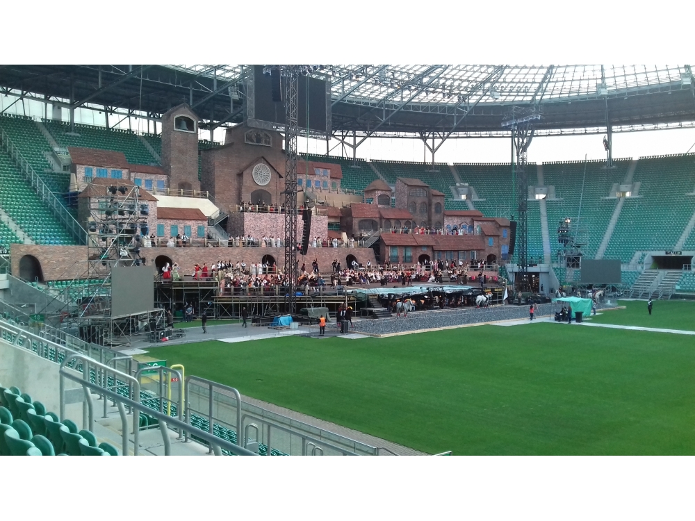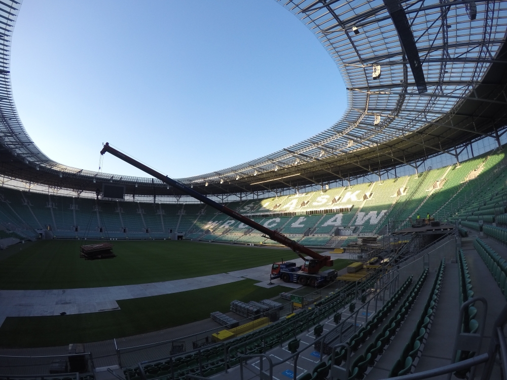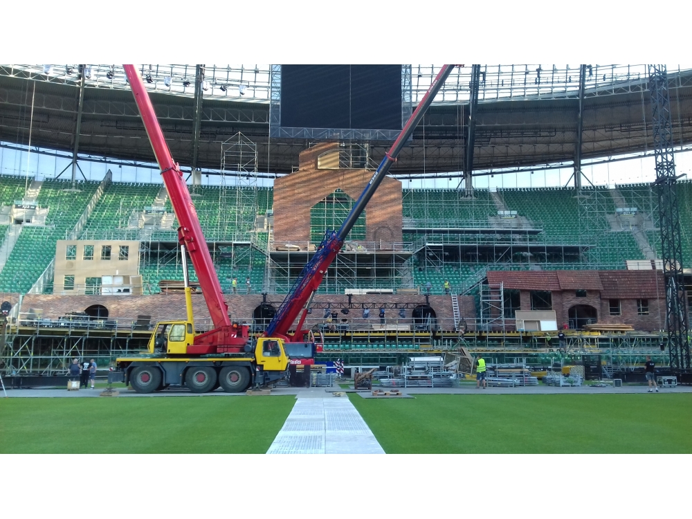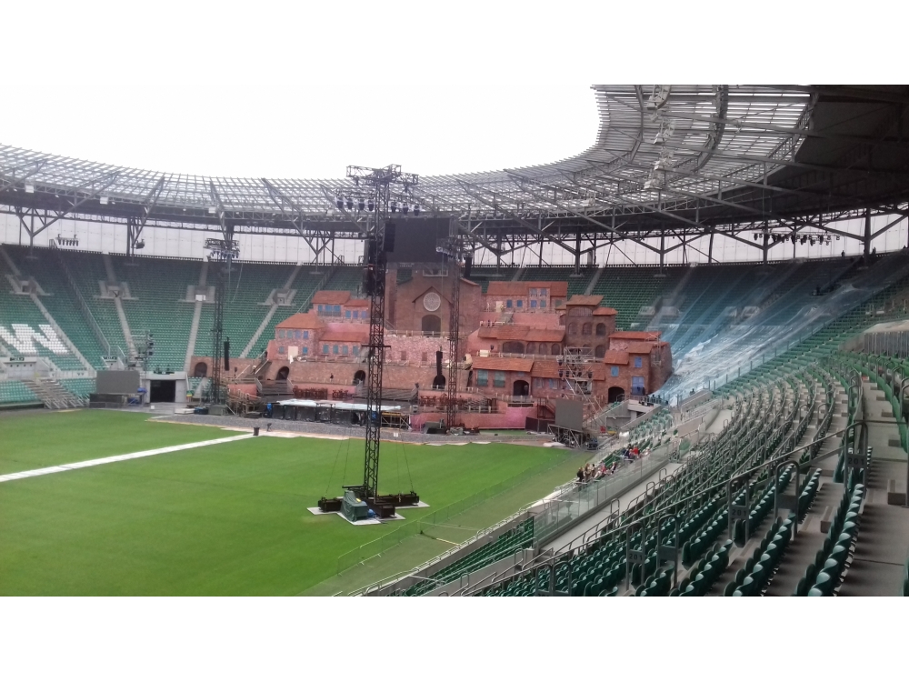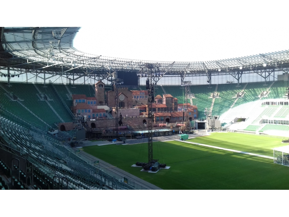 Gestaltung des gesamten Bühnenbildes, Aufbau und Management vor Ort im Breslauer Fußball Stadion.
