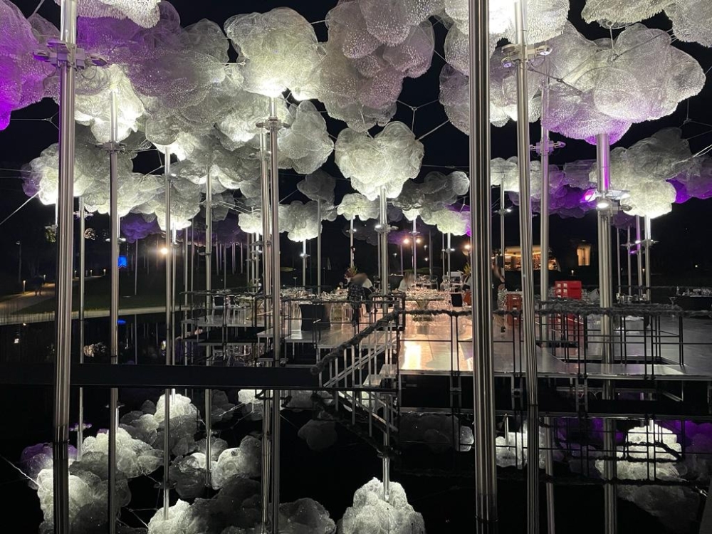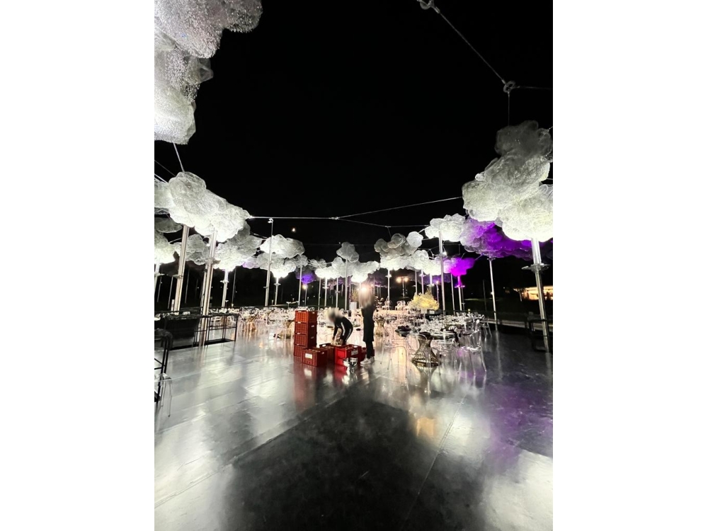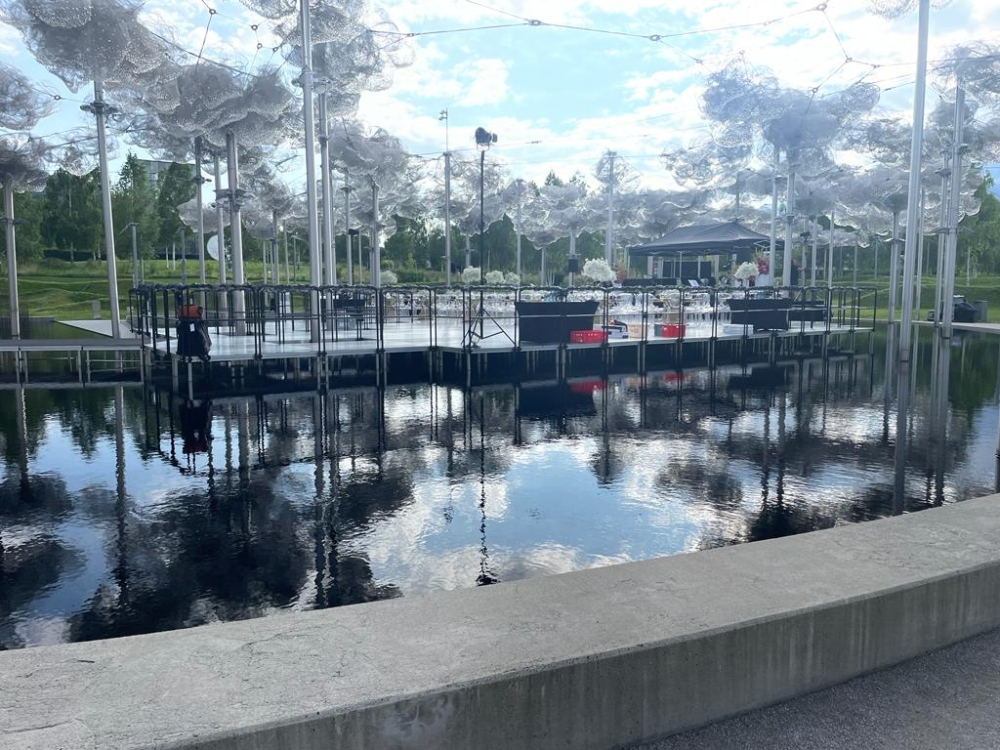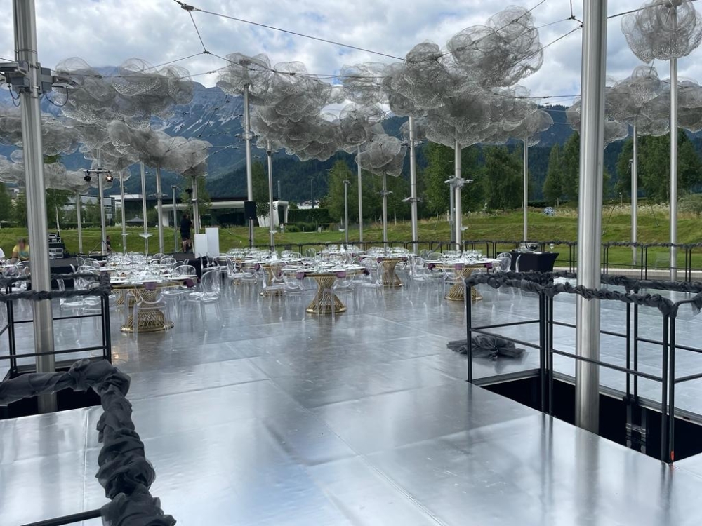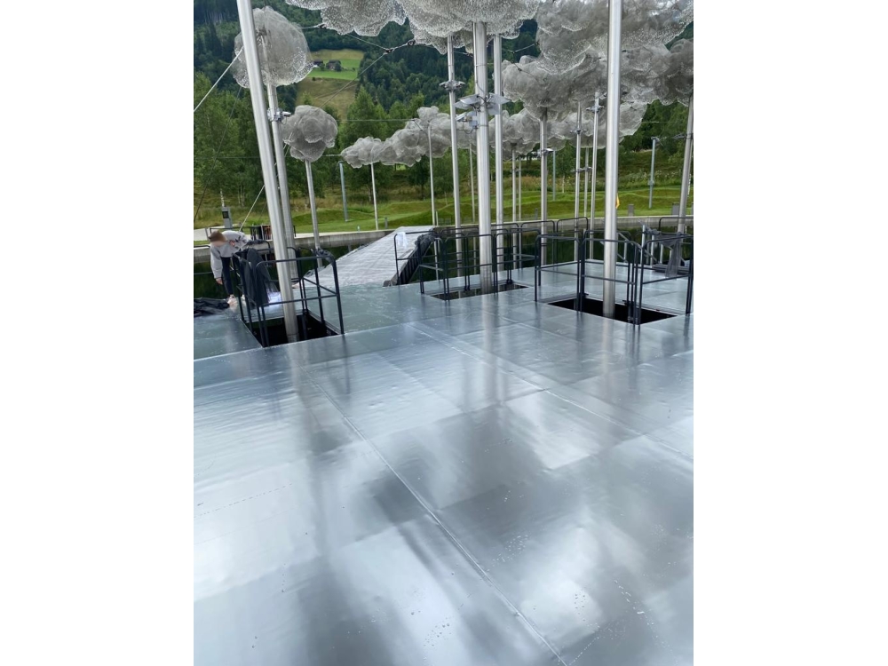 Für ein privates Event wurde eine Plattform inklusive Verkleidung in einem künstlichen Teich gebaut. Kunde Privat Fertigstellung 06.2023 Kategorie Eventbereich