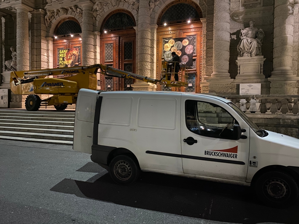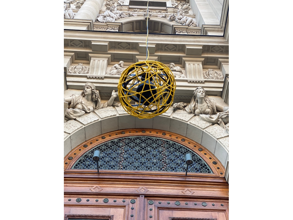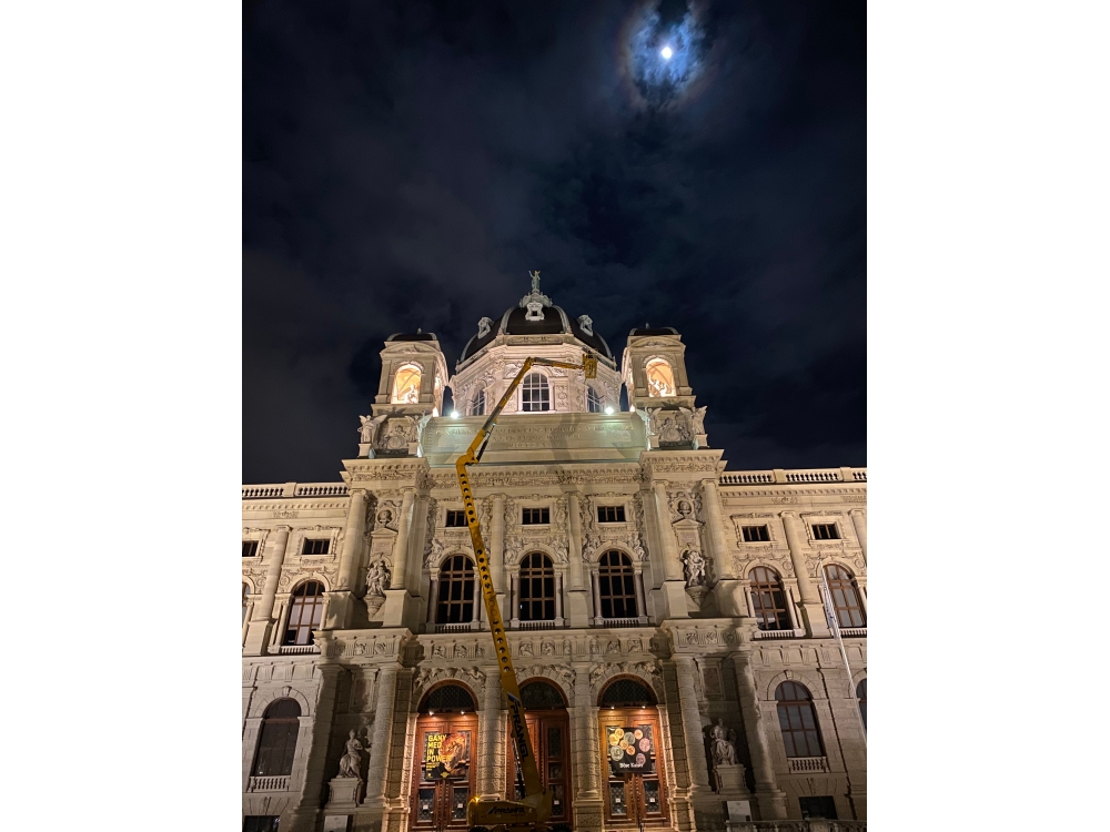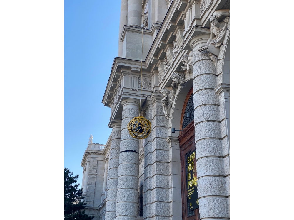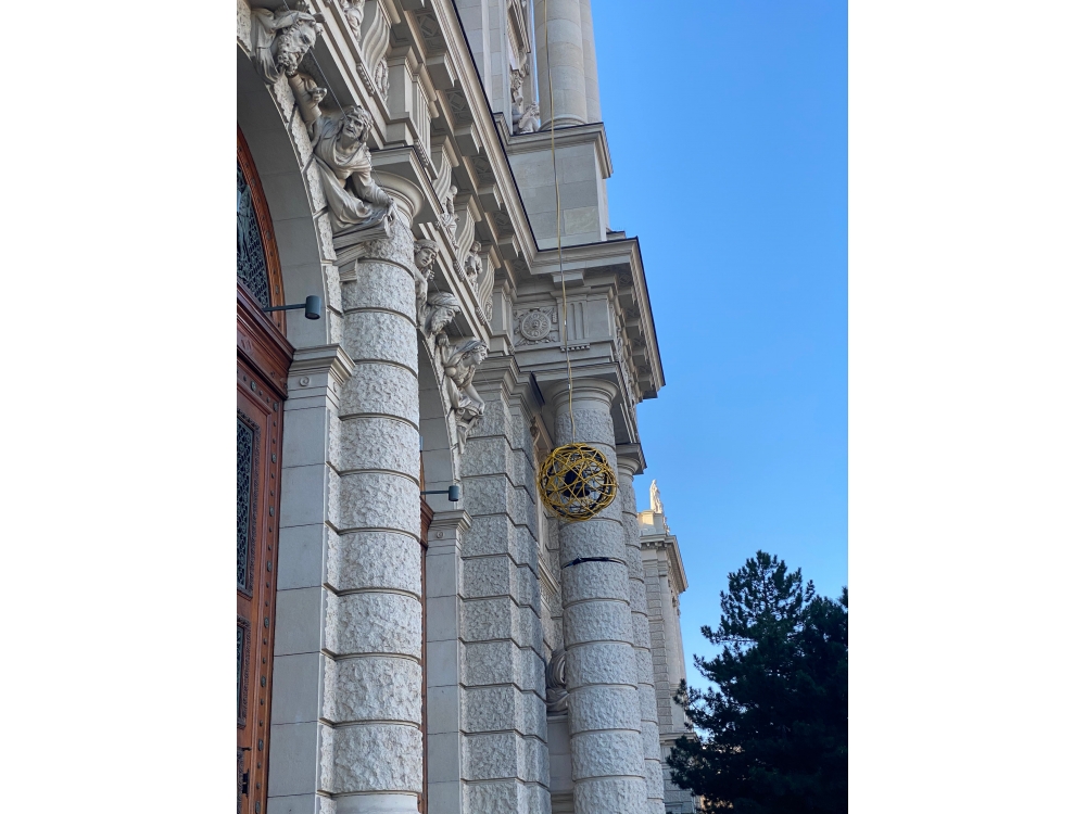 Ein Teil der Ausstellung "Beethoven Bewegt" waren die außen hängenden Lautsprecher - Die Klanginstallation. Diese wurde nach Plänen von Ayse Erkmens erstellt, welche das Lied “Esile Rüf”, also Beethoven’s “Für Elise” nur rückwärts, wiedergibt.