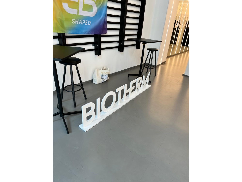 Special design project, company logo and presenting stand for BIOTHERM. Kunde BIOTHERM Fertigstellung 06.2024 Kategorie Sonderanfertigungen