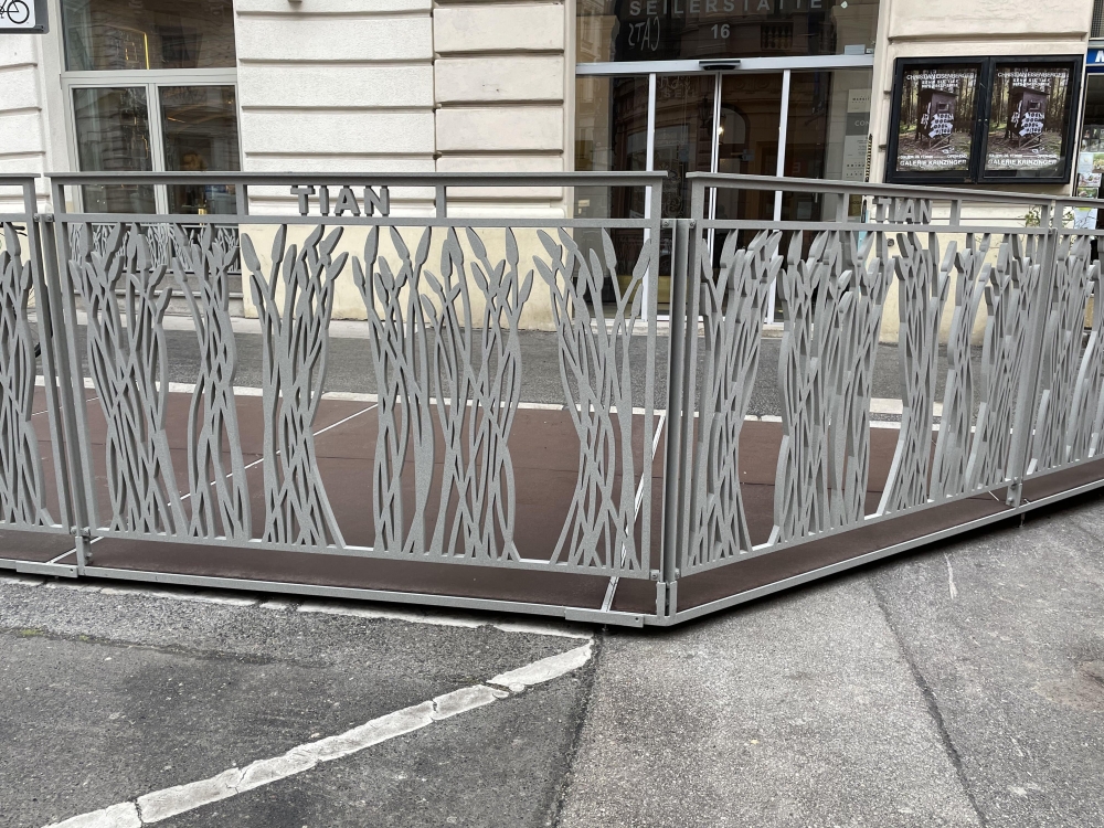 Die Produktion des Schanigarten Zauns für das Restaurant Tian in Wien (Himmelpfortgasse 23, 1010 Wien) nach Plänen von Michael Embacher.