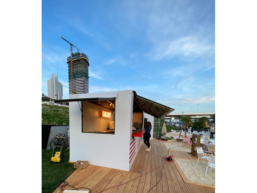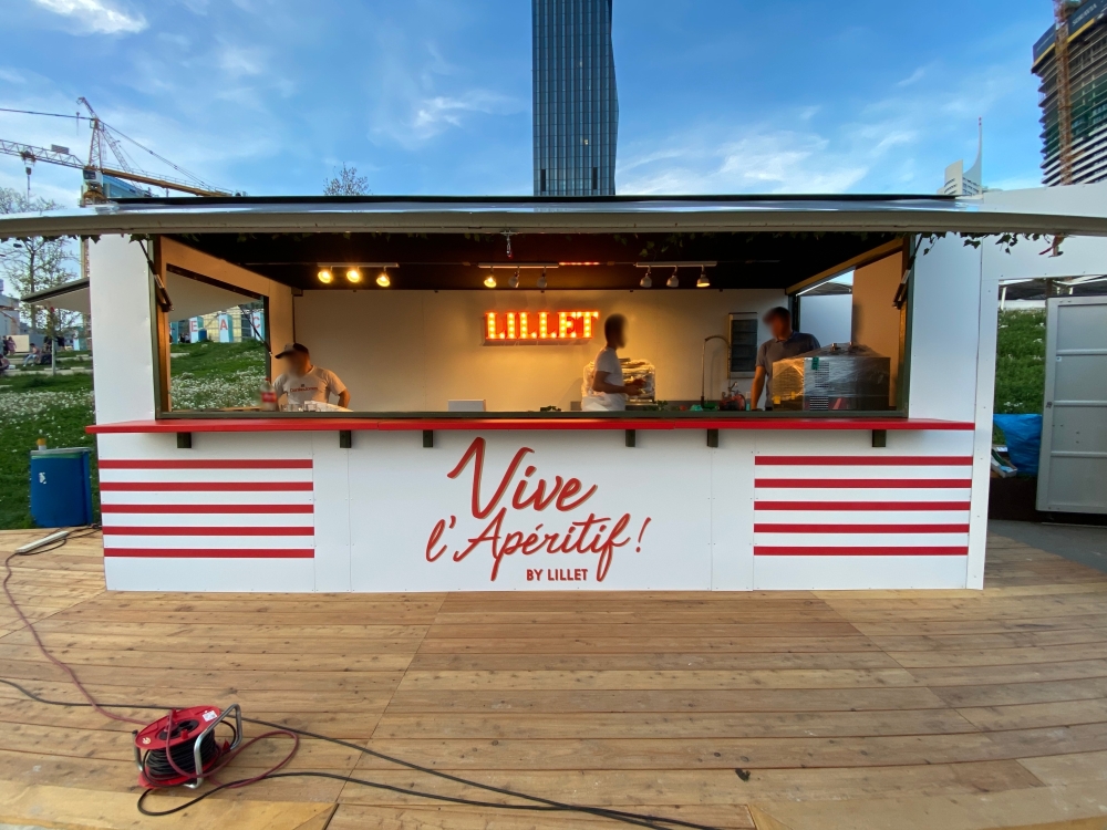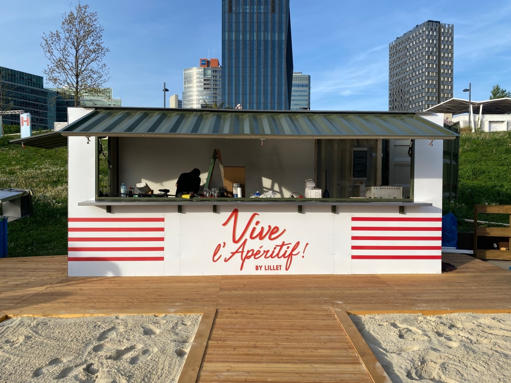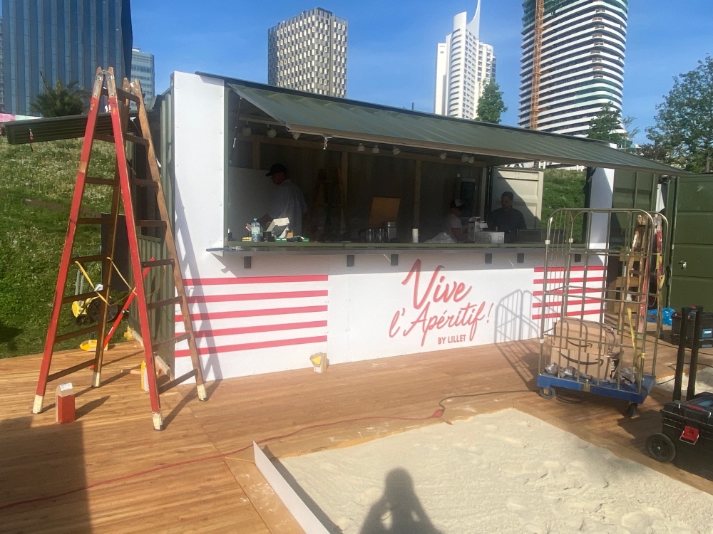 Wir haben für die Vive l´Apéritif x Lillet Bar am Copa Beach, die äußere Beplankung und zum Teil die Innere Gestaltung des Containers sowie die Produktion der Rankgitters übernommen.