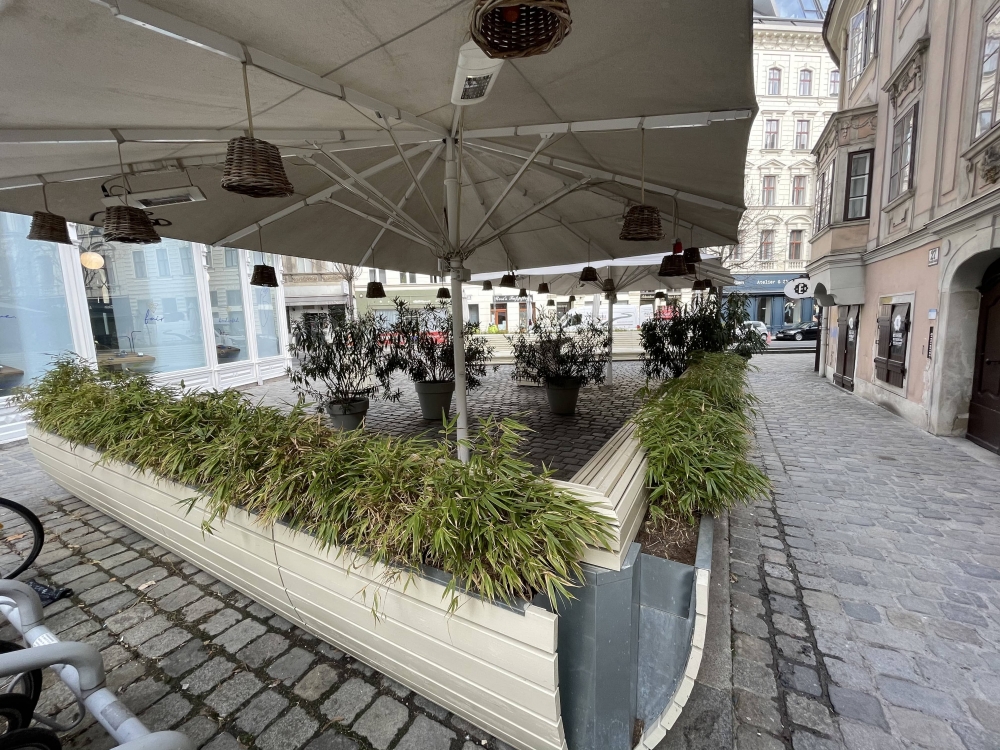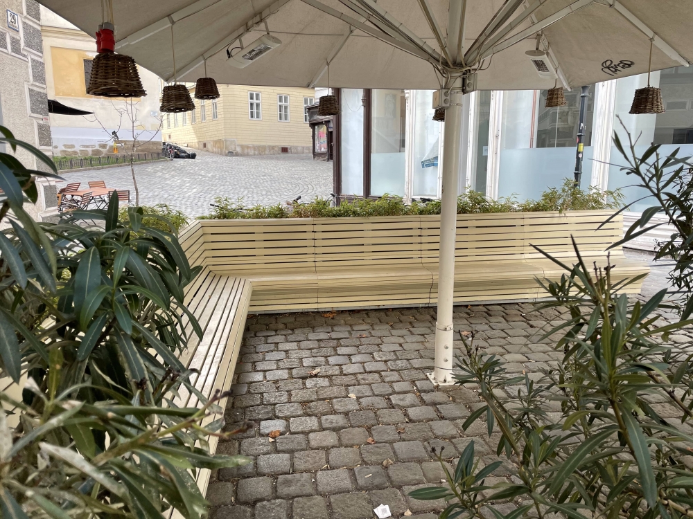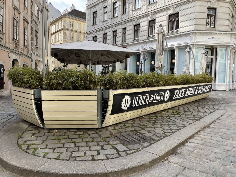 The production of the pavement cafe for the café/bar "Erich" in Vienna (Neustiftgasse 27, 1070 Vienna). Customer Café/Bar Erich Completion 01.2016 Category Special Design